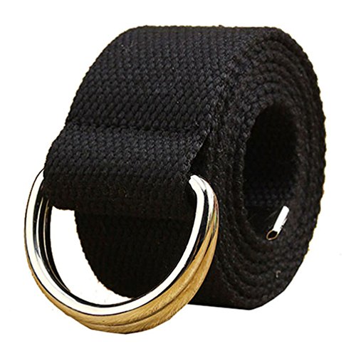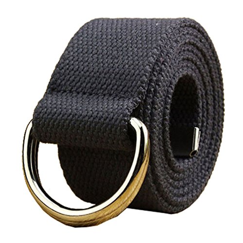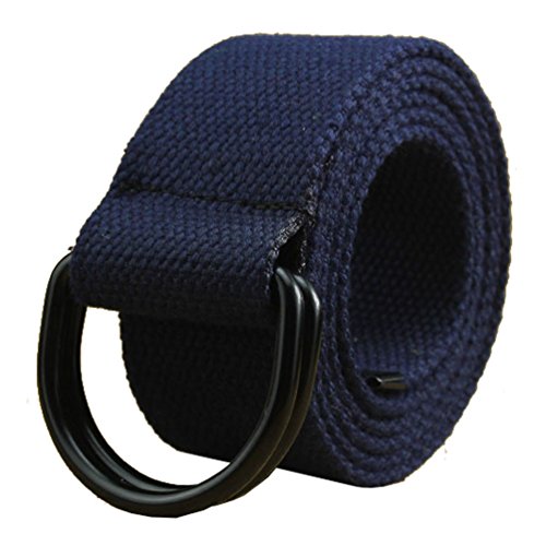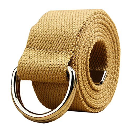 Binding : Apparel Product Description Classic military style canvas waist belt with double metal d ring buckle for cowboys and girls. Two choices for black and silver buckles and many other choices for different color straps, you can use it frequently to match different dresses and pants in your daily life or labor work. The convenient buckle and fashionable appearance makes this belt never out of date! Material: Quality canvas solid iron alloy Buckle: Double D-ring buckle Package including: Belt*1 Size Guide: Our size in the size chart is the total length of the belt (buckle is not included). You can choose your size through the waist size behind. Length 42", waist size 31"-35" Length 46", waist size 36"-39" Length 50", waist size 40"-43" Length 55", waist size 44"-47" Tips: * There may be a little color difference due to the different light and computer display. * Please allow 1 inch measurement error due to different measurement methods.