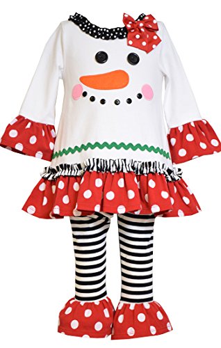 -. Binding : Apparel -. Brand : Bonnie Jean -. Department : baby-girls -. Feature : with Bracelet for Mom / Adorable Holiday Outfit! This is a great legging set for this upcoming Christmas holiday season. Your baby girl will enjoy this whiteredblack and green legging set by Bonnie Jean. This Christmas Outfit features a printed snowman face with button eyes and smile ruffled sleeves and Ruffled striped leggings complete this look. -. Label : Bonnie Jean -. Manufacturer : Bonnie Jean -. MPN : X06017 -. PartNumber : X06017 -. ProductGroup : Apparel -. ProductTypeName : PANTS -. Publisher : Bonnie Jean -. Studio : Bonnie Jean -. Title : Bonnie Jean Baby Girl's Happy Red Polka Dot Ruffle Snowman Legging Set