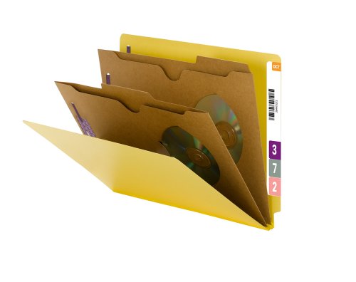 Smead End Tab Classification File Folder with SafeSHIELD® Fasteners, 2 Pocket-Style Divider, Letter Size, Yellow, 10 per Box (26719)