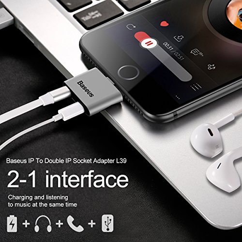 -. Title : iPhone 7/ 8/ X Adapter and Splitter, Baseus Lightning Adapter Double Lightning Headphone 2 in 1 Charge and Audio Listen to Music at the Same Time Converter for iPhone X,iPhone 8/8Plus/7/7Plus