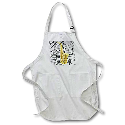 3dRose apr_38198_1 Gold Sax on Music Notes Full Length Apron with Pockets, 22 by 30-Inch, White