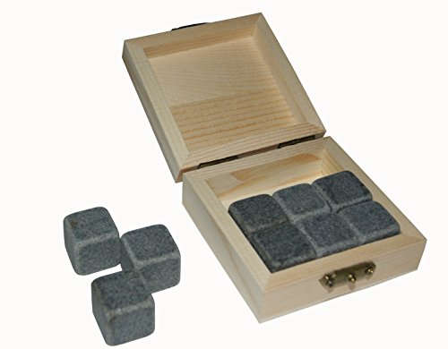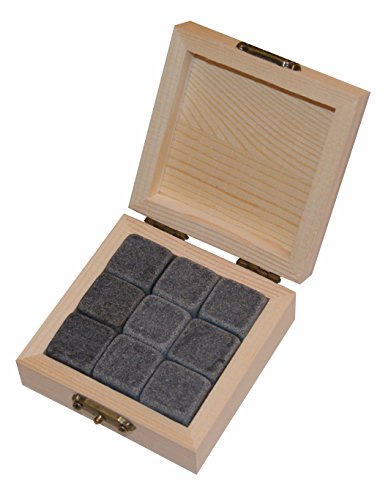 -. Brand : 18th Amendment Barware -. Color : Grey -. EAN : 0027829718152 -. Feature : Stones are of high quality imported Basalt stone -- colder than granite or soapstone / Chills whiskey fast and keeps it at an ideal drinking temperature / Elegant box that fits well with your current bar setup / Latch system for easy and convenient storage / Whiskey stones are known to put additional hair on a man's chest -. ProductGroup : Kitchen -. ProductTypeName : KITCHEN -. Title : NEW Product - Classic Whiskey Stones - Set of 9 in High-quality, Laser Engraved Wooden Box -. UPC : 027829718152 The 18th Amendment began prohibition, a dark time in the history of alcohol. Our brand aims to pay homage to this 13 year period with products that bring us back to that time. Whiskey stones are the best way to keep any type of whiskey chilled without watering it down. Just drop 2-3 frozen stones into a room temperature glass to get a perfect chilled beverage. Basalt stones stay cooler than granite and soapstone, so your drink will stay cooler, longer.