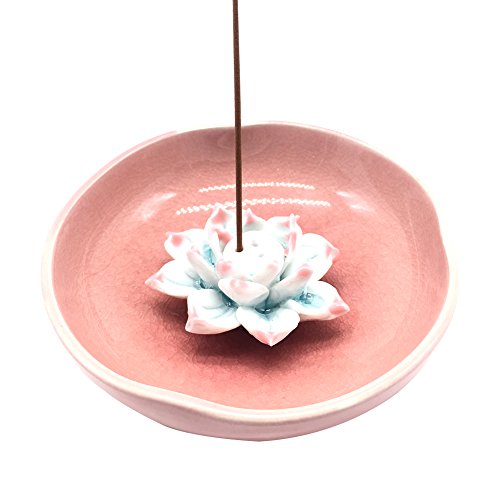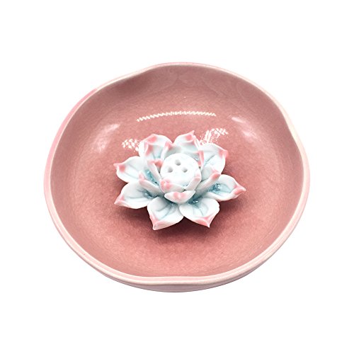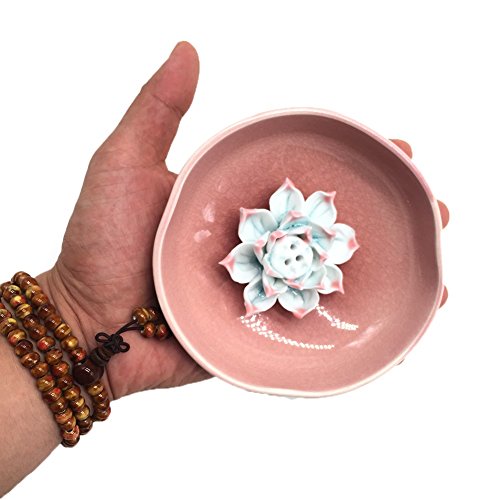 Anding Pink Round Ceramic Incense 3 holes Handmade Ceramic Lotus Censer/Incense Burner/Incense Holder