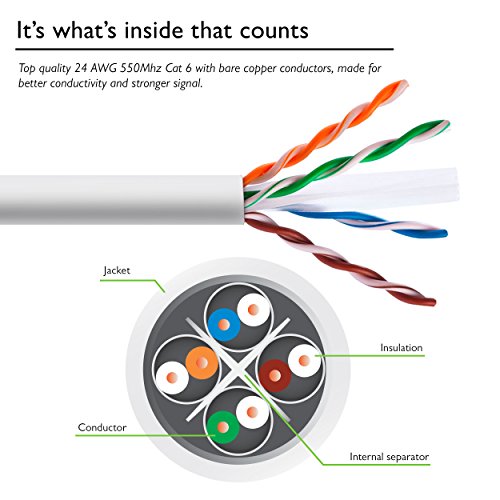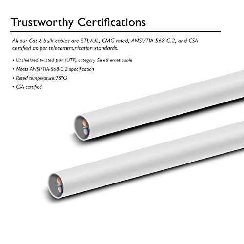 High performance Cat 6 cable, ETL listed, bulk Ethernet cable provides universal connectivity for wiring your home or office for high-speed network, in-wall rated (cm)