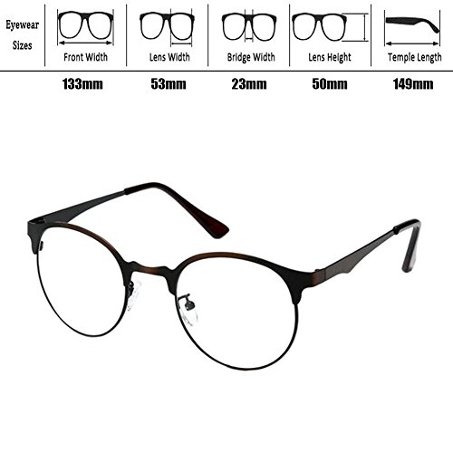 Product Description Description: Eyewear Type: optical glasses Lens type:transparent lenses. Department Name: Adult Gender: Unisex Frame Material: Metal Lens Material: Plastic Lens Width: 53mm Lens High: 50mm Nose: 23mm The total width:133mm Leg length:149mm Colour:Photo Color The frame is flexible, soft, comfortable and non-slip Solid links, so that glasses are not easy to fall off or fall It can be equipped with glasses myopia frames, decorative fashion Clear UV protected lens and you can replace them with your own prescription lenses Suitable for face: round face long face Square face Oval face Delivery Package: 1x Glasses 0