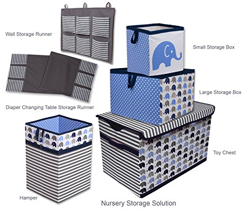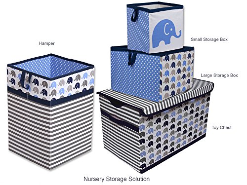 Bacati Elephants Storage Tote Basket, Blue/Grey, Large