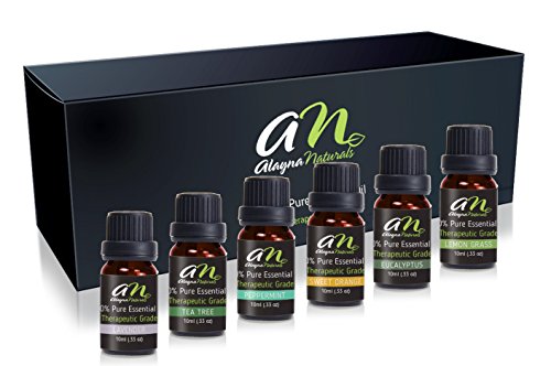 Alayna Naturals Aromatherapy Top 6 Essential Oils 100% Pure & Therapeutic grade - Basic Sampler Gift Set & Premium Kit - 6/10 Ml (Lavender, Tea Tree, Eucalyptus, Lemongrass, Sweet Orange, Peppermint)
