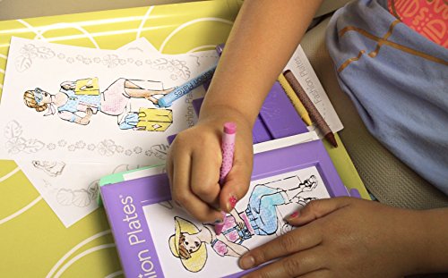Includes 8 Fashion Plates, 10 sheets of paper, 4 coloring crayons, 2 rubbing crayons, 1 crayon holder, 1 drawing tablet with storage tray, 1 idea guide
