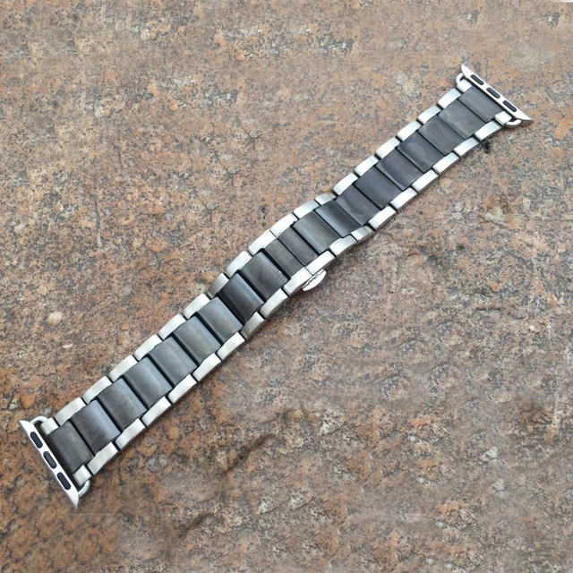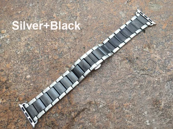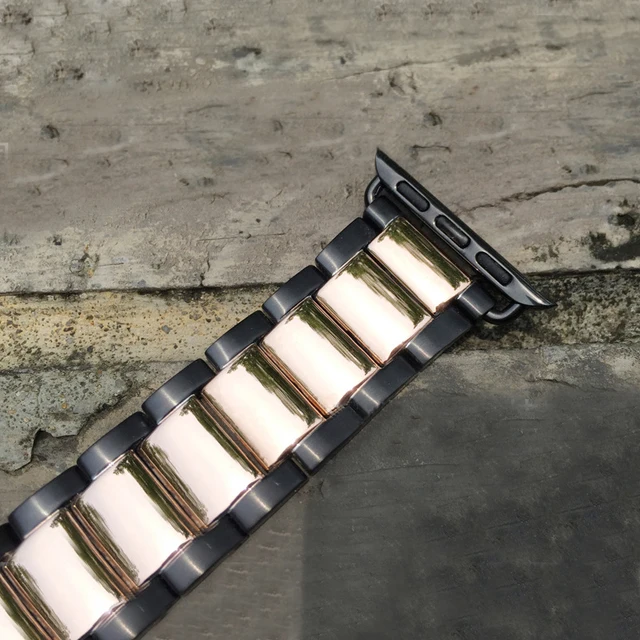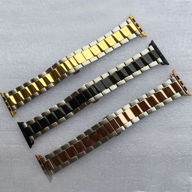 | [해외]스테인레스 스틸 시계 밴드 애플 시계 38/42 미리메터 3 비즈 블랙 실버 골드 로즈 골드 전기 도금 금속 팔찌 I210. |