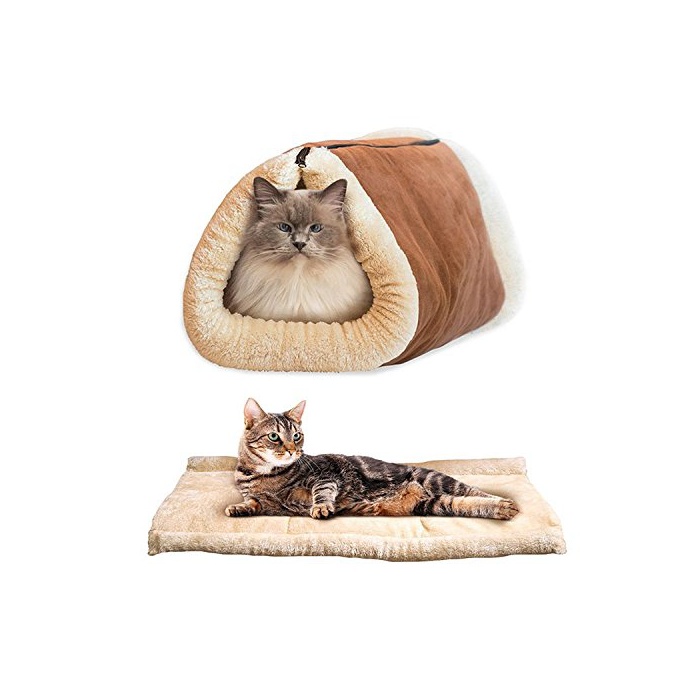 F-POWER 애완동물 베드 묘베드 베드와 쿠션 양용 따뜻한 애완동물 하우스 휴게소동 대인기 묘강아지 을 위한(브라운)
