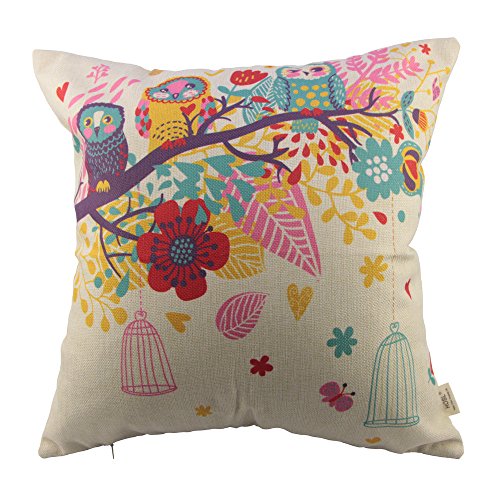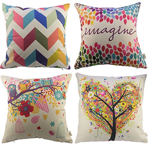 HOSL P110 4-Pack Square Decorative Throw Pillow Case Cushion Cover ( 1x Owls with Birdcage, 1x Love Tree, 1x Multicolor Zig Zag Chevron, 1x Colorful Imagine )