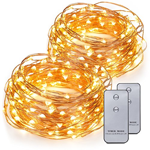 Kohree 2 Pack 120 LEDs Battery Operated String Light 20ft Copper Wire, Waterproof Design Decor Rope Lights for Festival, Wedding, Holiday and Party with Remote Control