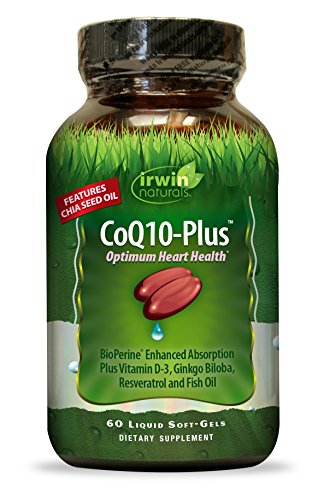 -. Binding : Health and Beauty -. Brand : Irwin Naturals -. EAN : 0710363585785 -. Feature : CoQ10-Plus features Vitamin D-3 and Fish Oil, to Chia Seed Oil and Ginkgo extract to support healthy blood flow / This formula also supplies a broad spectrum of botanicals traditionally used to support cardiovascular health such as Hawthorn fruit, Cayenne and Gotu Kola / This product can be taken daily for ongoing maintenance of overall heart health / The nutrients in these easy-to-swallow Liquid Soft-Gels are released fast / This unique formula utilizes patented BioPerine for an enhanced absorption -. IsAdultProduct : 0 -. Label : Irwin Naturals -. Manufacturer : Irwin Naturals -. NumberOfItems : 1 -. PackageQuantity : 1 -. ProductGroup : Health and Beauty -. ProductTypeName : HEALTH_PERSONAL_CARE -. PublicationDate : 2016-04-10 -. Publisher : Irwin Naturals -. ReleaseDate : 2016-04-07 -. Size : 60 -. Studio : Irwin Naturals -. Title : Irwin Naturals COQ10-Plus Optimum Heart Health Supplement, 60 Count -. UPC : 710363585785