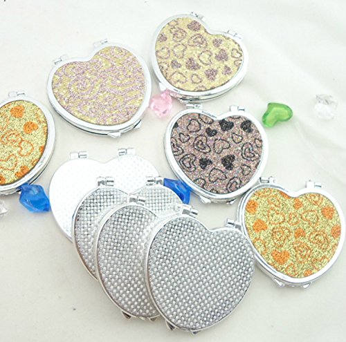 SUKRAGRAHA 3 pc Shiny Heart Shape Compact Purse Mirror Assorted Color and Pattern