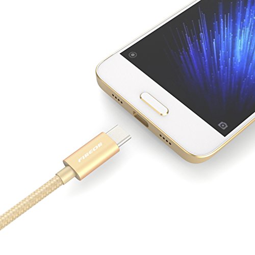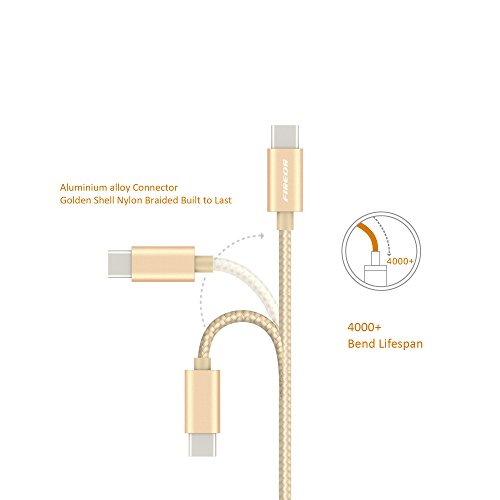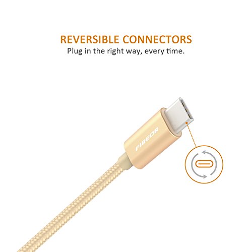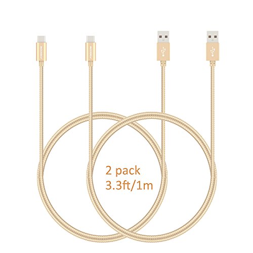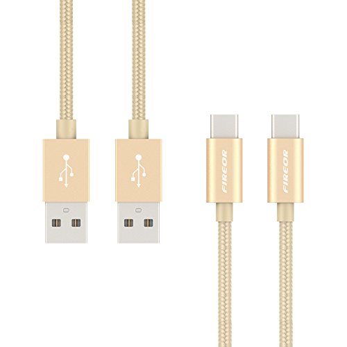 USB C Cable (2 pack, 3.3ft/1m) Fireor Nylon Braided Type C Cable with Reversible Connector for Samsung Galaxy S8, Google Pixel, Nexus 5X/6P, OnePlus 2/3/3T and More USB Type C Devices. (Gold)