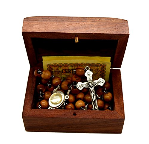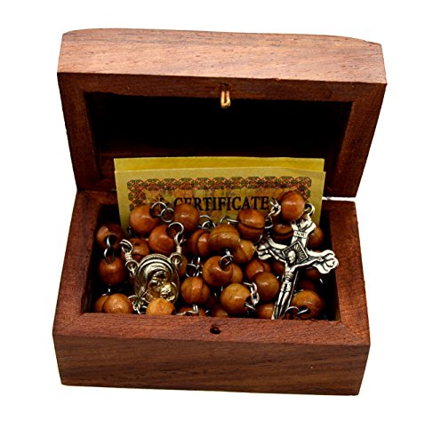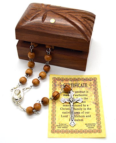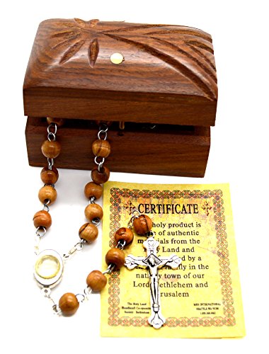 Holy Land Olive Wood Bethlehem Rosary Beads with Holy Water From the Jordan River Madonna and Child Wooden Hand Carved Jewelry Box