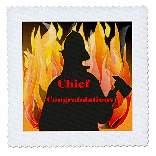 3dRose Image of Congratulations for Fire Chief with Dramatic Flames Quilt Square, 8 x 8"