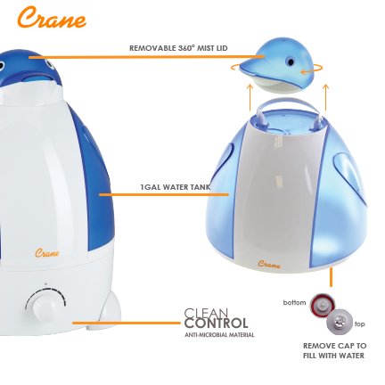 Crane USA Humidifiers - Dragon Adorable Ultrasonic Cool Mist Humidifier - 1 Gallon Adjustable Mist Output, Automatic Shut-off, Whisper-Quiet Operation for Home Bedroom Office Kids & Baby Nursery