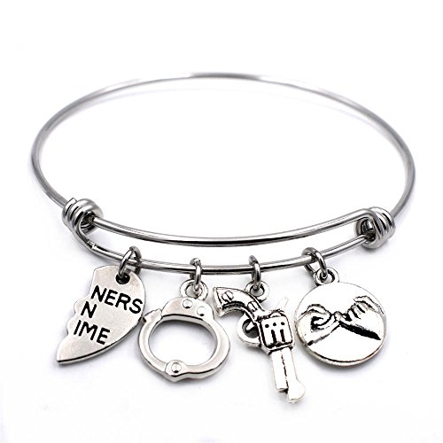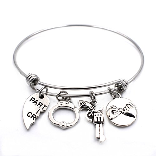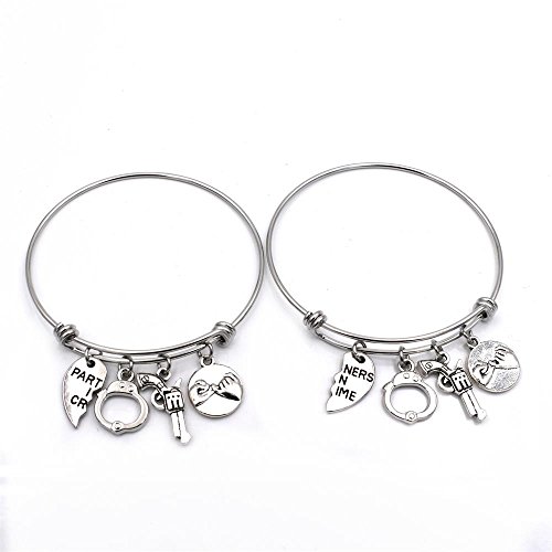 Matching 2 partners in crime bangles including patrtners in crime, pinky promise, handcuffs, gun charms, perfect birthday gifts for best friends