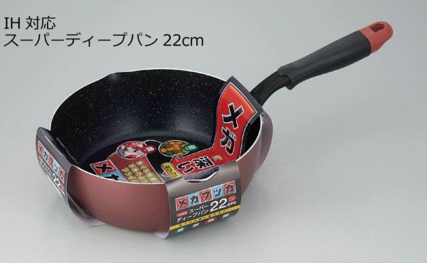 深みがあるのでいろんな料理に使えます。 製造国:中国 素材・材質:本体:アルミニウム合金底面:ステンレス鋼(総板厚2.6mm)内面:ふっ素樹脂加工(マーブル)外面:焼付塗装 仕様:熱源:ガス、IH、ラジエントヒーター、ハロゲンヒーター、シーズヒーター食洗機使用不可容量:2.7L鍋の深さ:78mm ※サプライヤー直送品 ご注文後3~4営業日後の出荷となります【商品名】メガフッカ IH対応スーパーディープパン22cm ワインレッド MR-8146