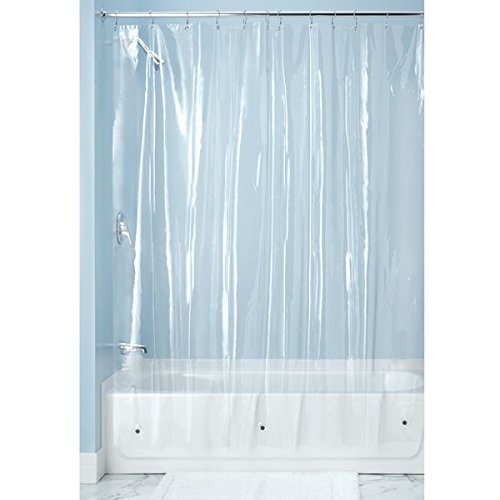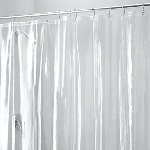 Our clear, mildew-free shower curtain liner is made out of heavy-duty, 10-gauge PEVA. Strong reinforced header. The shower curtain includes 18 rustproof metal grommets for easy hanging.