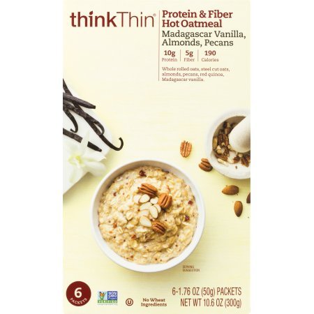 -. Binding : Health and Beauty -. Brand : think.thin -. Color : Multi-colored -. EAN : 0689289191106 -. Feature : The whole rolled oats and steel oats make a delicious medley with almonds, pecans and red quinoa. / GLUTEN FREE | GMO† FREE | KOSHER / thinkThin High 20g Protein, No Sugar, Gluten Free Brownie Crunch Snack Bars is the perfect protein bar for everyone. / Free ThinkThin Protein Bars (3) -. IsAdultProduct : 0 -. Label : think.thin -. LegalDisclaimer : Must be at least 18 y.o. to purchase. -. Manufacturer : think.thin -. MPN : 6897625285 -. PackageQuantity : 11 -. PartNumber : 6897625285 -. ProductGroup : Health and Beauty -. ProductTypeName : HEALTH_PERSONAL_CARE -. Publisher : think.thin -. Size : 11 CT -. Studio : think.thin -. Title : thinkThin Protein & Fiber Hot Oatmeal Madagascar Vanilla, Almonds, Pecans - 6 CT and High Protein Brownie Crunch Snack Protein Bars Sugar Free and Gluten Free, 5 CT -. UPC : 689289191106