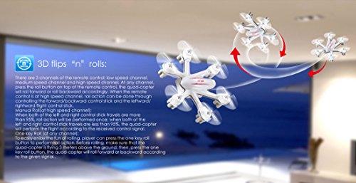 Function: Up/Down,turn Left/right,leftward,rightward,side flying,3D flips,3D rolls,one key roll button, Gravity Control Model
