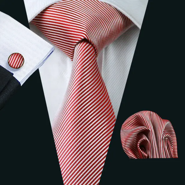 LS-1083 남성 넥타이 레드 스트라이프 비즈니스 100% 실크 패션 배리. 좋아서 넥타이 손수건 커프스 남성 정장 웨딩 파티