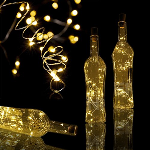 Wine Bottle Cork Lights,Wine Bottles String Lights 2M 20LED Cork Copper Wire Battery Operated String Lights for DIY, Party, Wedding, Christmas, Decoration Warm White (Pack of 2)