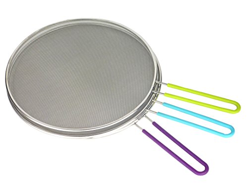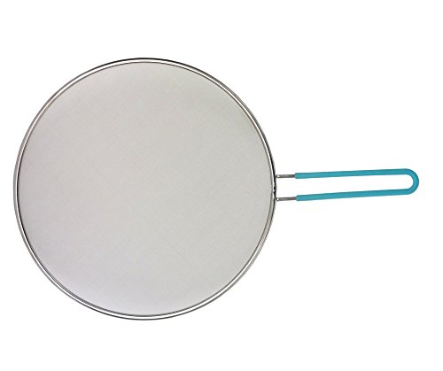Minel Large 12 Inch Durable Stainless Steel Mesh Splatter Screen w/ Rubber Grip Handle, Splatter Guard for Cooking and Frying