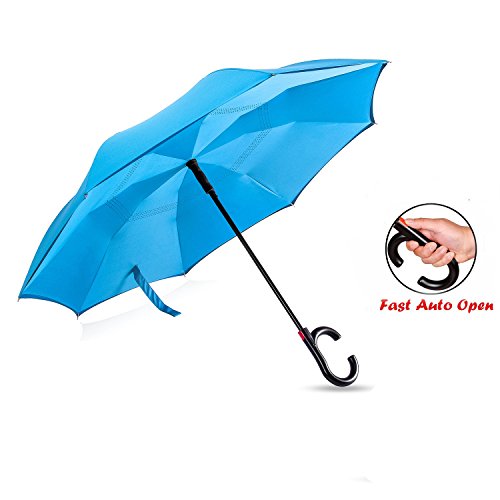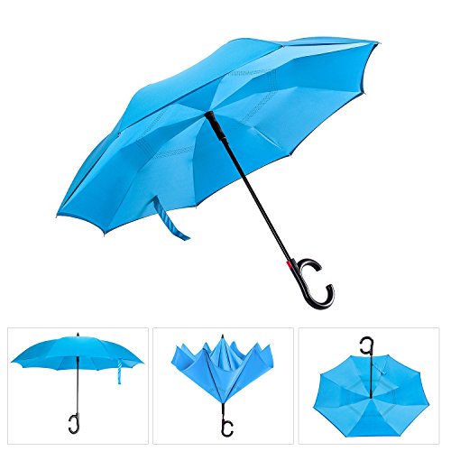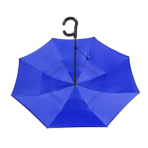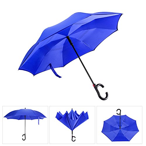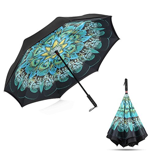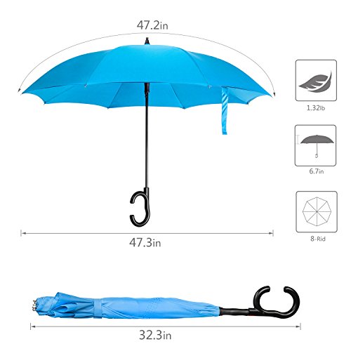 -. Feature : ANTI-ULTRAVIOLET - UPF>50+ Sunscreen fabric production, breathable double layer protection, do not need to afraid the sun even in the summer, care for your skin. / DRIP FREE-Unique inverted open & close design, helping trap the water on the inside, keeping the wet surface AWAY from you when you get in or out of the car. / INVERTED UMBRELLA-The surface of the umbrella cloth wet will cleverly folded. So it won't get wet when you get it or out of the car. / Self-STANDING DESIGN-Humanize design to make it stand up totally on its own when closed, saving more space in indoors. make life easier. / HIGH HARDNESS SKELETON-Using high quality electroplated steel shaft and premium resin-reinforced fiberglass ribs. strong windproof in heavy rain, tough enough to ensure the gusts.