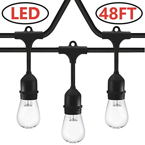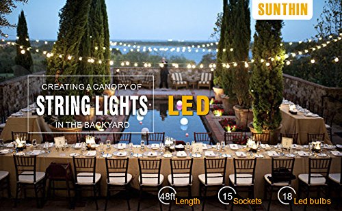 SUNTHIN 48ft LED String of Lights with 15 x E26 Sockets and Hanging Loops, 18 x 0.9 Watt S14 Bulbs (3 Spares) -Indoor/Outdoor string lights, Commercial String Lights, Patio Lights, Light Strings