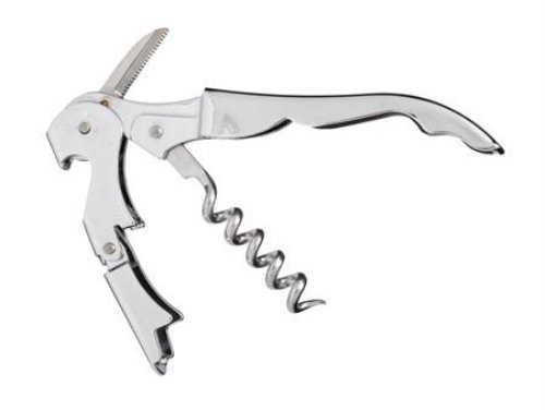 - Information: new style hinged double-lever system. Duo-lever corkscrew, chrome plated stainless steel serrated blade and boot lever. All stainless steel body