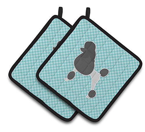 Caroline's Treasures Poodle Checkerboard Blue Pair of Pot Holders BB3739PTHD, 7.5HX7.5W, Multicolor