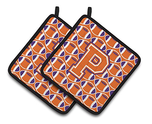 Caroline's Treasures Letter P Football Orange, White & Regalia Pair of Pot Holders CJ1072-PPTHD, 7.5HX7.5W, Multicolor