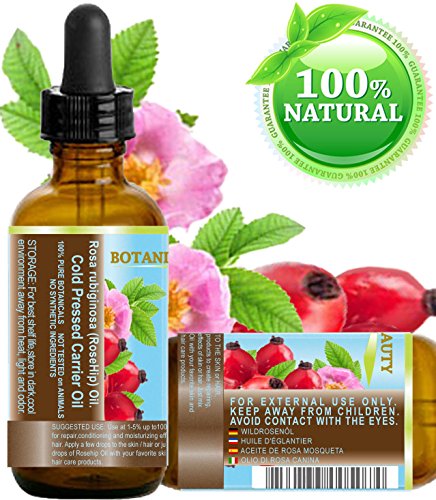 [Product Information]- ROSEHIP OIL is rich in gamma linoleic acid, which comes from essential fatty acid omega-6 and vitamins C &E, B1, B2, B6 and A, ideal light moisturizer for everyday use. ROSEHIP OIL is award-winning for its use within personal care, spa and aroma therapeutic applications. Due to its rapid absorption it is especially well suited for use in facial, lip, body, hair care and massage products