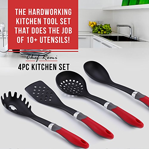 LIFETIME GUARANTEE - The Chef Remi 4-Piece Kitchen Tool Set comes with a 100% Money Back Lifetime Warranty. Try It RISK FREE Today! The best rated, essential, heavy duty cooking utensils.