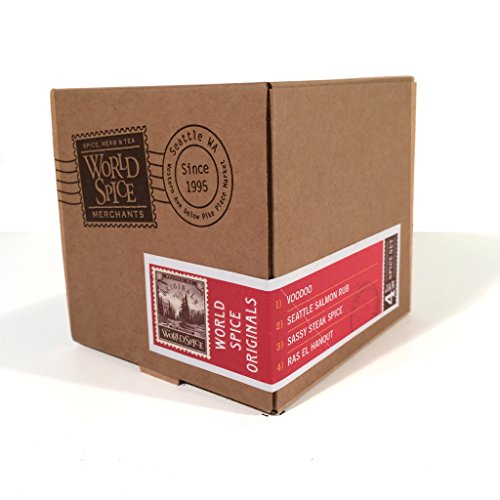 -. Feature : World Spice Merchants Gift Sets Contain Our Finest Signature Blends & Premium Spices / This Gift Set Contains: Voodoo, Seattle Salmon Rub, Ras el Hanout, Sassy Steak Spice / Packaging: 4 Half-Cup Jars, Glass / Assembled in Small Batches to Ensure Quality & Freshness / All-Natural, Vegetarian, Vegan