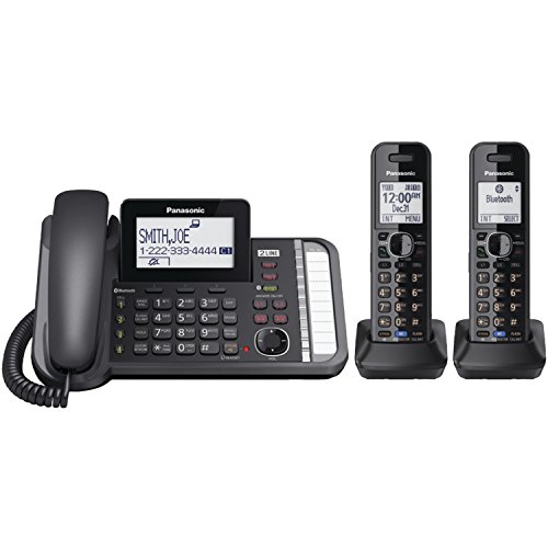 Panasonic KX-TG9582B Link2Cell DECT_6.0 2-Handset 2-Line Digital Cordless Phone. High Quality DECT6.0,LINK-CELL,2-LINE