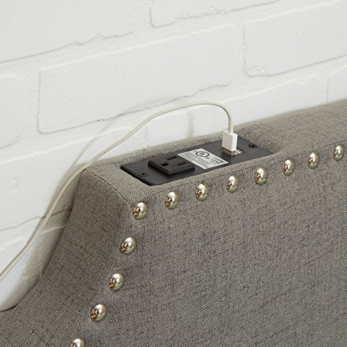 Studio : Cheyenne Industries LLC Publisher : Cheyenne Industries LLC Product Description Enhance any bedroom or twin-size bed with the Silverwood Products The Powered Twin Headboard. This headboard mounts easily to the wall, not the bed. It has an MDF wood frame with fabric upholstery in your choice of color. This headboard features nail head trim and a convenient grounded outlet and two USB ports for recharging your phone or tablet.? Dimensions: 32L x 3.5W x 40H in.. MDF wood frame. Fabric upholstery in your choice of color. Nail head trim. Includes grounded outlet and 2 USB ports. Fits twin and twin XL beds. Mounts to wall?. 0