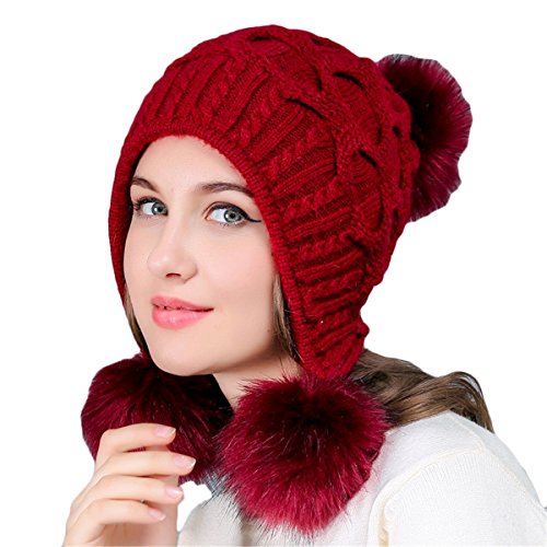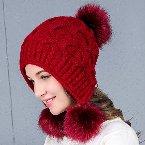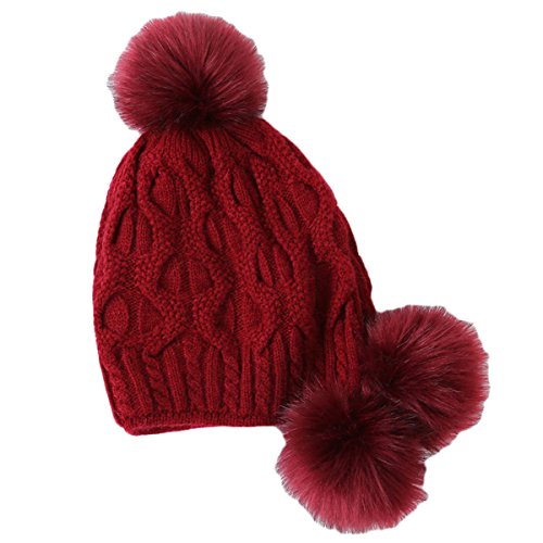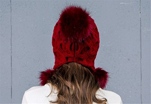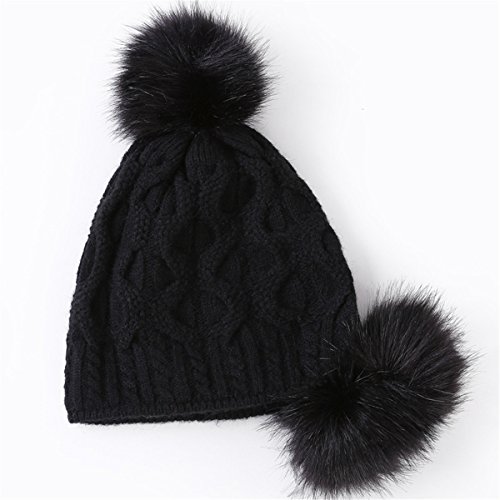 (Mychant)/Accessories/Hats/DIRECT FROM USA/Women's Winter Warm Skully Slouchy Knitted Hats Snow Ski with Rabbit Fur Pom