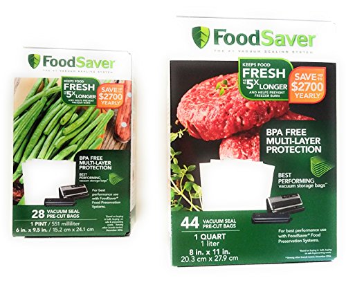 FoodSaver 44 Quart-Sized Bags & 28 Pint-Sized Bags with Unique Multi-Layer Construction Vacuum Sealers, Clear