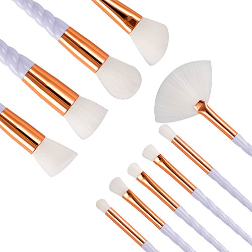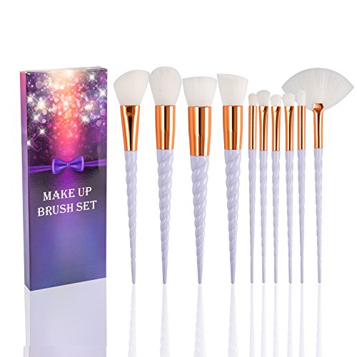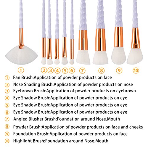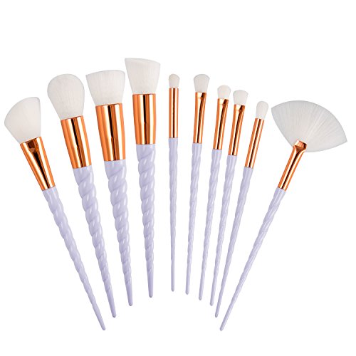 Fashion Base 10Pcs Professional Soft Unicorn Premium Synthetic Makeup Brushes Cosmetics Set Tools Face Powder Contour Highlighter Liquid...