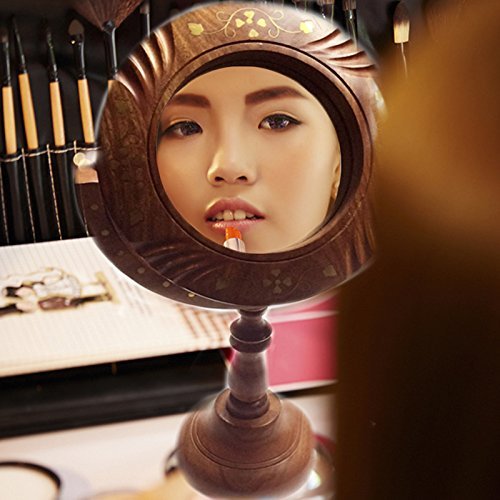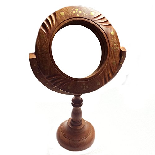 Valentines for your Loved Ones, 14 Inch Wooden Makeup Mirror, Inlay Work Mirror with Stand, Decorative Wooden Mirror, Antique Wooden Mirror, Brown Color Decorative Mirror for Home Decor