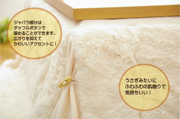 長毛マイクロファイバー(フィラメント糸)を使用していますので遊び毛が出にくい商品です。細い糸を使用し手触り感がよくラビットファーとも呼ばれています。長い毛足が空気の層を作り保温につながります。薄手なので折りたたんでもかさばらず、コンパクトに収納できます。部分暖房のこたつは電気代もおトクです。