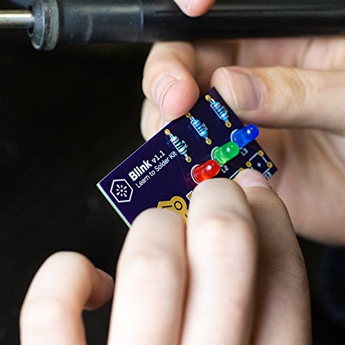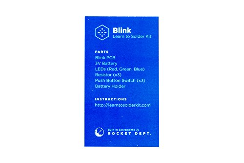 -. Binding : Toy -. Brand : Rocket Department -. EAN : 0046655807045 -. Feature : INTERACTIVE PUSH BUTTONS - Unique & engaging project. Press each button to turn on a bright LED. Press all three at the same time and all the LEDs light up! A great project for learning soldering and basic circuit design. / PERFECT FOR BEGINNERS - Specifically designed for people with no prior soldering experience. The high-quality parts and intuitive design make it easy to focus on learning the new soldering skills instead of being frustrated / MADE IN USA - Our printed circuit boards are made in the US and every kit is packed and shipped to Amazon from our Sacramento, CA location (CERTIFIED OPEN SOURCE HARDWARE US000048) / HAVE AN ISSUE? TALK TO A REAL PERSON! - We provide support for all our products. We love working with our customers. Any issue, big or small, please reach out to us directly. You can contact us through our Amazon Seller account or the email included in the instructions. We'll get back to you ASAP! / BATTERY INCLUDED - Includes the required CR2032 battery to turn it on. No hassle running out to the store or overnighting a battery to get it to turn on. -. IsAdultProduct : 0 -. IsAutographed : 0 -. IsMemorabilia : 0 -. Label : Rocket Department -. Manufacturer : Rocket Department -. MPN : LYSB017S00DJ2-TOYS -. PackageQuantity : 1 -. PartNumber : LYSB017S00DJ2-TOYS -. ProductGroup : Toy -. ProductTypeName : TOYS_AND_GAMES -. Publisher : Rocket Department -. Studio : Rocket Department -. Title : Learn to Solder Kit: Blink -. UPC : 866948000300