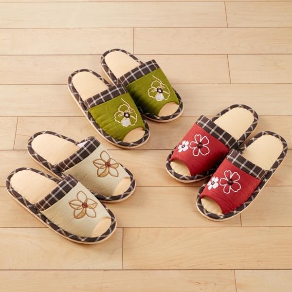 おしゃれな花の刺繍が入ったスリッパの3色組です。