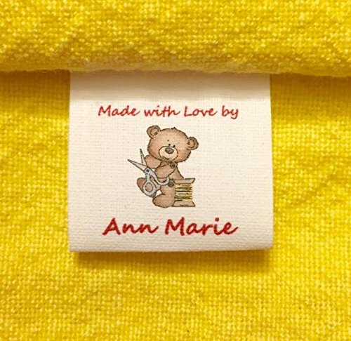 -. Title : 40 Custom Precut Cotton Loop Fold Sewing Label/tags with Cuddly bear Graphic-made in USA
