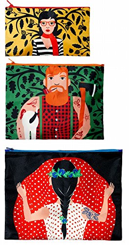 -. Title : Loqi "Cool Menschen" 3 Reißverschlusstaschen