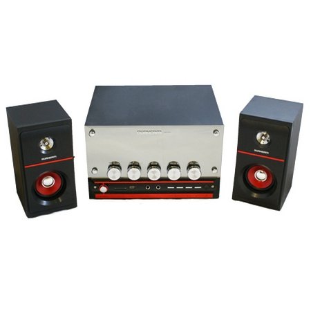 Durherm DR-S30 a unique 2.1 home audio speakers system recently launched by Durherm. It provides great sound quality with easy accessibility to many important features such as Volume Control, Bass Control, USB/SD inputs, 2 microphone input. The system is quite loud with clear sound quality along with an unbeatable price. Crank up the audio on your PC, or MP3 CD Players or even in your IPOD with this 2.1 speaker system and enjoy clean, crisp, consistent sound from your games, music, and more. Excellent performance and sound quality powered with 190 Watt PMPO / 95 Watt RMS subwoofer and two channel amplified satellite speakers. You've got enough power to fill your room with big, balanced sound. Both speakers and the subwoofer are magnetically shielded to provide the protection against image distortion from external electronic sources. Compatible with any type of Stereo Audio Source (All Brand PC TV DVD CD MP3 IPOD Laptops). The system is complete, comes with all necessary cables. When using the wireless remote you have control over stand-by, master volume, bass, treble and loudness Woofer has MDF (wood) enclosure and it has glossy front panel surface. Satellites also have all glossy surface . They will suit right next your screen on your desk. Warranty : 1 year provided by Durherm which means we will be your direct contact for warranty exchanges for factory defectsFeature